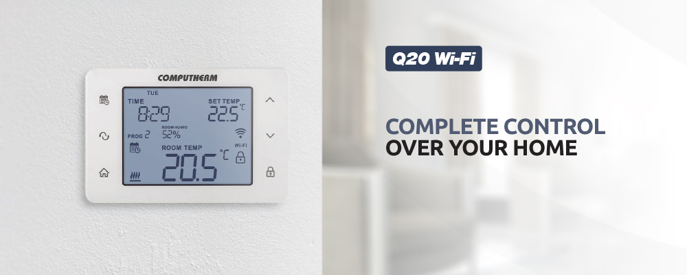 The COMPUTHERM Q20 Wi-Fi room thermostat has been specifically designed to control heating and cooling systems. In addition, the thermostat is also suitable for controlling electrical and electronic devices which can be turned on and off by interrupting and resuming power supply.